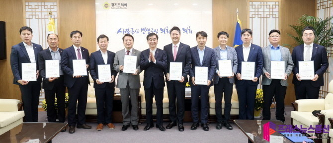 | ▲ 염종현 경기도의회 의장이 7일 의장 접견실에서 열린 예산정책위원회 위촉식에서 위원 12명에게 위촉장을 수여하고 기념촬영을 하고 있다.(사진=경기도의회) |