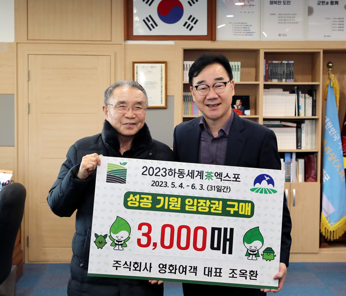 (재)하동세계차엑스포조직위원회 공동조직위원장인 하승철 군수는 “이번 영화여객의 입장권 구매가 엑스포 성공 개최에 큰 힘이 될 것”이라고 말했다.