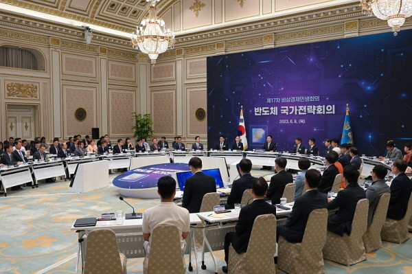 이날 국가전략회의에는 반도체 전후방 업계, 학계, 애널리스트 등 각계 전문가와 함께 국민의힘 당대표, 원내대표, 정책위의장, 관계부처 장관 등 약 60명이 참석해 메모리반도체 초격차 유지 전략, 시스템반도체 산업 육성 방안, 소부장과 기술인력 확보 방안 등에 대한 심도 있는 논의를 진행했다.