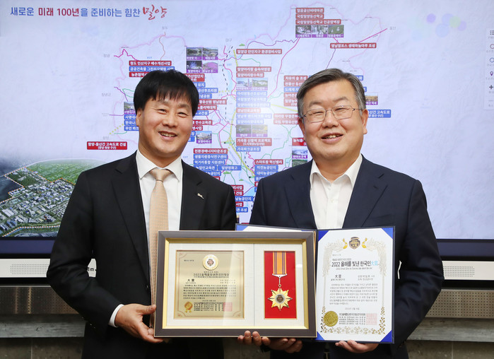 박일호 시장은 “그동안 밀양의 발전을 위해 시민분들과 함께 끊임없이 달려온 것이 이번 수상으로 이어질 수 있었다”면서 “핵심 성장동력 사업들을 성공적으로 완성해 영남권 허브도시 밀양의 토대를 만들어 나가겠다”고 말했다.