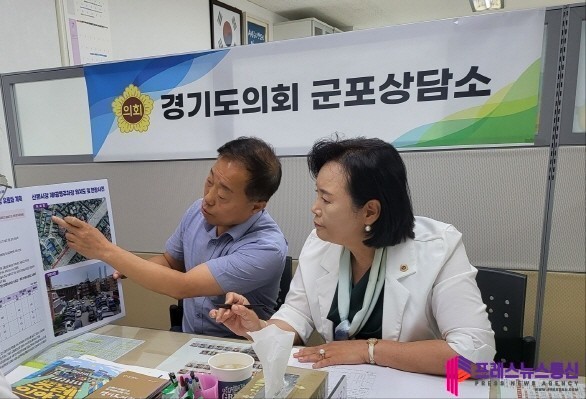 [프레스뉴스] 김대일 기자= 경기도의회 정윤경 의원(더불어민주당, 군포1)은 지난 25일 경기도의회 군포상담소에서 군포시청 차량관리과 김상만 과장, 황성희 주차정책팀장과 함께 산본시장 제1공영주차장 유료화 사업에 대해 논의하는 자리를 가졌다.