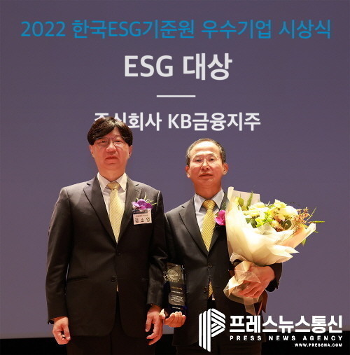 [프레스뉴스] 김대일 기자= KB금융지주(회장 윤종규)는 2일 한국ESG기준원(이하 KCGS, Korea Institute of Corporate Governance and Sustainability)이 주최한 ‘2022년 KCGS 우수기업 시상식’에서 ESG 우수기업부문 대상을 단독 수상했다.