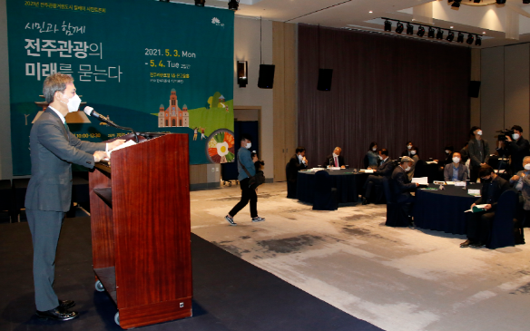 시는 3일 라한호텔에서 김승수 전주시장과 박양우 전 문화체육관광부 장관을 비롯한 관광 분야 전문가들이 참석한 가운데 ‘시민과 함께 전주관광의 미래를 묻다’를 주제로 2021 전주시 관광거점도시 시민대토론회를 열었다.