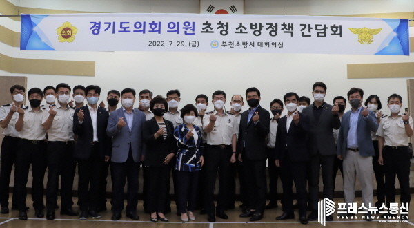 [프레스뉴스] 김대일 기자= 경기도의회 염종현 의원(더민주, 부천1), 이선구 의원(더민주, 부천2), 이재영 의원(더민주, 부천3), 황진희 의원(더민주, 부천4), 김광민 의원(더민주, 부천5), 김동희 의원(더민주, 부천6), 유경현 의원(더민주, 부천7), 박상현 의원(더민주, 부천8)은 29일 부천소방서에서 부천소방서(서장 신희범) 관계자들과 정담회를 갖고 소방공무원의 노고를 격려하는 시간을 가졌다고 경기도의회 부천상담소는 밝혔다.