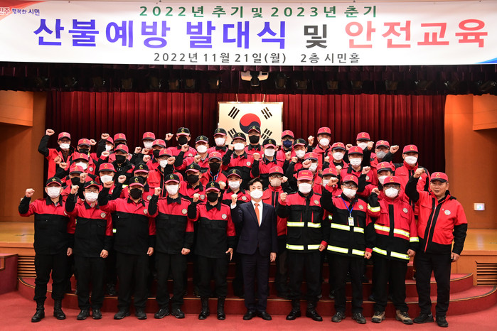산불예방 발대식은 본격적인 산불조심 기간(2022.11.1. ~ 2023.5.15.)을 맞아 시민의 생명과 재산을 보호하고 산림 피해 최소화를 위해 실시했으며, 산불진화 반장의 결의문 낭독과 함께 산불예방에 최선을 다할 것을 다짐했다.