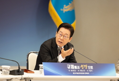| ▲이재명 대통령이 16일 서울 용산 대통령실 청사에서 열린 제2차 핵심규제 합리화 전략회의에서 발언하고 있다.(사진= 뉴스1) |