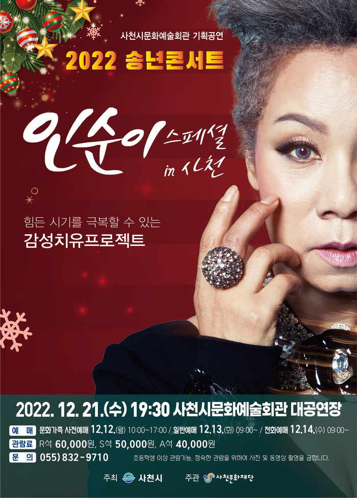 | ▲ 2022 송년 콘서트 ‘인순이 스페셜 in 사천’ 홍보 포스터(사천시 제공) |