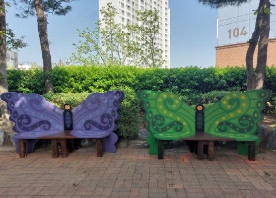 구는 지난 3월 설치 대상지 선정을 위해 동별 수요조사를 했으며, 그 결과 7개 동에 나비모양 캐릭터 의자 16개를 설치할 예정이다.