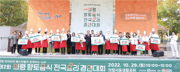 ▲ 의령군은 민선 8기를 맞아 농업인들의 안정적인 소득증대와 미래지향적인 안전한 먹거리 공급을 위해 2023년 농축산시책을 추진할 다수의 역점사업을 마련하고 총 120억 원의 예산을 투입한다.(사진=2022년 제2회 의령 향토음식 전국요리 경연대회 모습) |