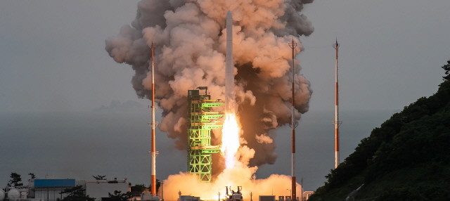 ▲ 한국형 우주발사체 누리호(KSLV-Ⅱ)가 25일 오후 전남 고흥군 나로우주센터에서 발사되고 있다.(사진=한국항공우주연구원) |