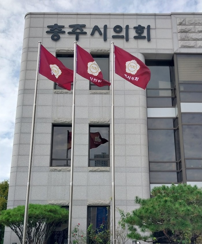 충주시의회 건물은 1997년도에 충주시청 건물과 함께 건립됐고 2006년 12월에 859만원을 들여 시설비 및 부대예산으로 자체예산을 들여 게양대를 공사했다.