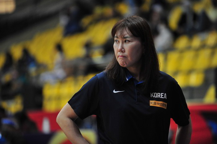 [프레스뉴스] 채정병 특파원= 30일(현지시간) 요르단 암만에서 열리고 있는 국제농구연맹(FIBA) 아시아컵 여자농구 4강 진출 결정전에서 우리나라가 대만을 80대74로 꺾으며 4강에 진출한 가운데 정선민 대표팀 감독이 경기 중 선수들의 움직임을 살피고 있다.