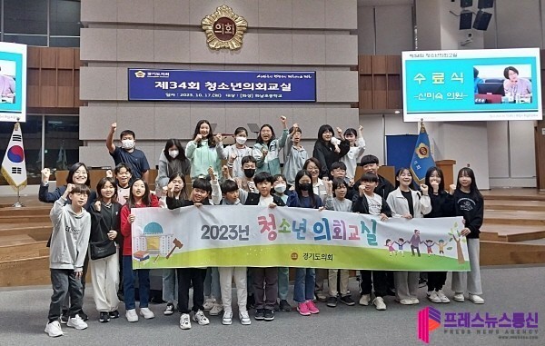 [프레스뉴스] 김대일 기자= 경기도의회 경제노동위원회 신미숙 의원(더불어민주당, 화성4)은 지난 17일(화) 제34회 청소년의회교실을 찾은 동탄 ‘화남초등학교’ 학생들이 참여한 경기도의회 청소년의회교실에서 의원과의 대화 및 수료증 수여식을 함께 진행하며 뜻깊은 시간을 보냈다.
