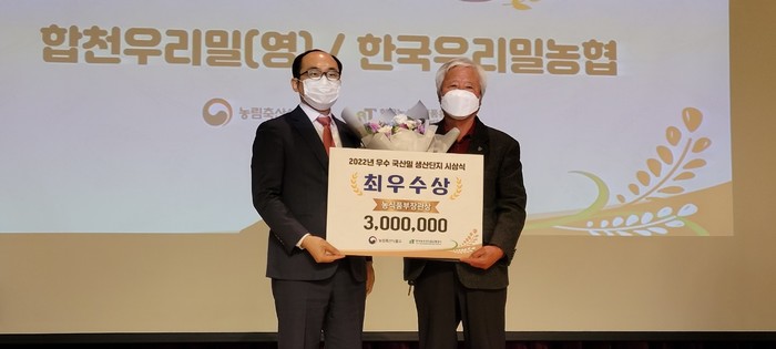 이번 선발대회는 전국 국산 밀 생산 단지 51개소를 대상으로 공동영농(조직화), 규모화(재배면적, 생산량), 품질관리, 경영안정 등을 평가하여 △단지 조직화・규모화 △재배관리 등을 통한 품질 제고 △판로 확대를 통한 경영안정 등 3개 부문으로 우수 단지를 선정했으며, 합천우리밀영농조합법인(대표 김석호)은 서면평가 및 현장평가를 통해 생산량 전량을 민간 판매로 유통하는 등의 판로 확대 부문에서 심사위원들의 높은 평가를 받아 최우수상의 영예를 안았다.