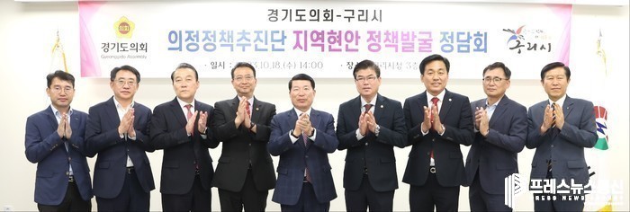 [프레스뉴스] 김대일 기자= 경기도의회(의장 염종현) 의정정책추진단은 18일 구리시에서 ‘지역 현안 정책발굴 정담회’를 열고 구리지역 정책 현안과 도의회 차원의 지원 방안을 논의했다.