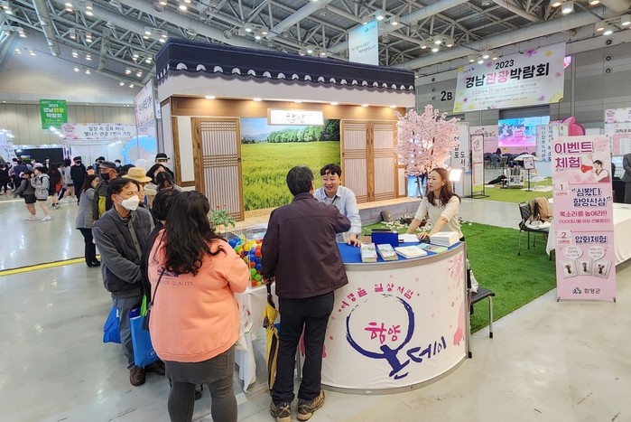 함양군은 이번 박람회에서 벚꽃을 활용하여 한옥을 배경으로 부스를 꾸며 포토존을 조성하고 함양군의 관광상품인 생활관광 활성화 사업 ‘여행을 일상처럼, 함양 온데이(on day)’를 주요 홍보했다.