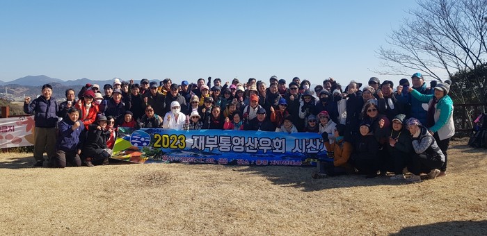 재부통영산우회는 향인들의 단합과 결속을 강화하기 위하여 2014년 350여 명으로 결성해 활동하고 있으며 2018년 삼봉산, 2019년 미륵산에서 시산제를 지내다 코로나로 인하여 연기된 행사를 계묘년 새해 여황산자락 통영생태숲공원에서 지냈으며, 시산제 행사 후에는 준비해온 음식을 먹으면서 고향의 향수를 달래며 통영의 발전을 기원했다.
