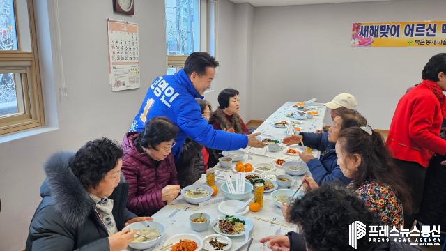 백운동 새마을협의회가 주최한 해당 행사는 지역의 노년층에 떡국을 대접하고 나눔을 실천하기 위해 마련되었다.