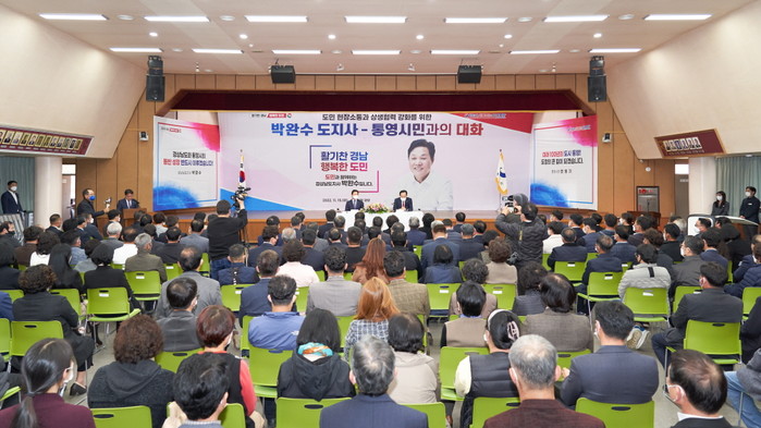 [프레스뉴스] 정재훈 기자= 경남 18개 시‧군 순방 중인 박완수 경남도지사는 지난 15일 통영시청 강당에서 도민 현장소통과 상생 협력 강화를 위한 대화의 시간을 가졌다.
