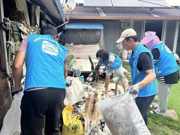 이날 기동대는 읍면 34가구를 일제 방문해 봉사에 나섰다. 청소와 폐기물 수거는 복지기동대원들이 맡았고, 해충 방역은 앞선 6월 5일 업무협약을 맺은 전문방역업체 ‘세스코’에서 힘을 보탰다.