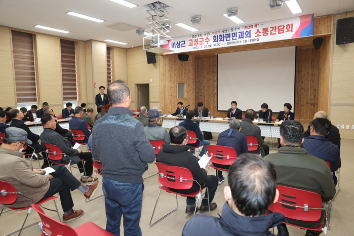 | ▲ 이상근 고성군수가 회화면민과 소통간담회를 하고 있다.(사진=고성군) |