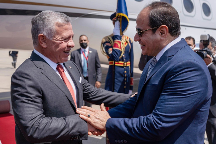 | 압둘라 2세 요르단 국왕이 이집트 카이로에서 열린 3국 정상회담에 참석하고 있다. (사진=요르단 왕실 제공) |