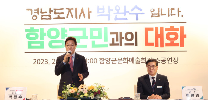 [프레스뉴스] 정재훈 기자= 박완수 경상남도지사는 23일 오후 함양군을 찾아 200여 명의 함양군민들과 “도민과의 대화”를 가졌다.