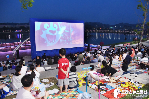 [프레스뉴스] 장현준 기자= 한여름 밤, 호숫가를 가로지르는 나무 덱이 수려한 불빛으로 반짝이는 시흥 은계호수공원. 가족들과 산책 나온 시민들이 돗자리를 펴고 옹기종기 모여 앉아 스크린에서 상영 중인 영화 속으로 빠져든다.
