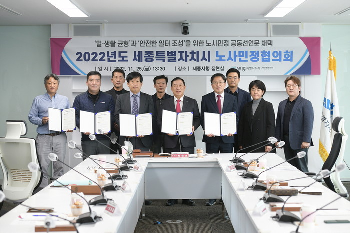 [프레스뉴스] 김교연 기자=세종시가 25일 시청 집현실에서 노사민정협의회 위원 13명이 참석한 가운데 회의를 열고 ‘2023년 노사민정 공동선언문’을 채택했다.