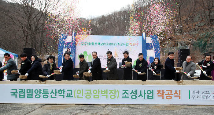 [프레스뉴스] 정재훈 기자= 밀양시는 22일 밀양시 산내면 삼양리 산4-1번지 일원에서 체계적인 등산교육을 통한 산림복지를 실현하기 위한 국가기관인 국립밀양등산학교(인공암벽장) 조성사업 착공식을 개최했다.