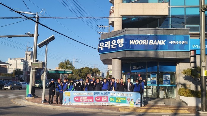 | ▲ 어린이보호구역 교통안전 캠페인을 실시하고 있다.(사진=사천시) |