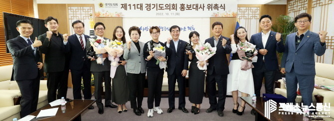 위촉식에는 남경순(국민의힘, 수원1)·김판수(더민주, 군포4) 부의장, 김정영(국민의힘, 의정부1) 의회운영위원장과 함께 홍보대사 선정 심의위원으로 활동했던 국중범(더민주, 성남4), 이상원(국민의힘, 고양7), 오석규(더민주, 의정부4), 장윤정(더민주, 안산3) 의원 등이 참석했다.