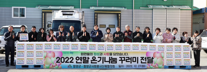 | ▲ 함양군 사회봉사단체협의회원들이 손수 만든 2022 연말 온기나눔 꾸러미 전달(사진=함양군) |