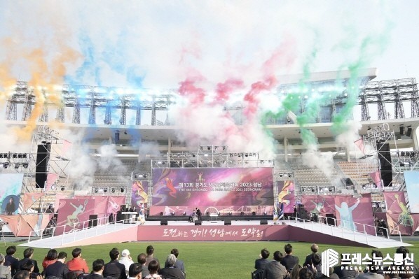 | ▲ 27일 오후 성남시종합운동장에서 김동연 경기도지사, 31개 시장·군수, 국회의원 대한장애인체육회장, 경기도의원 및 선수 등 2,000여명이 참석한 가운데 제13회 경기도장애인체육대회가 열렸다.(사진=경기도) |