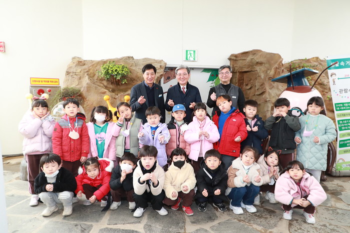 | ▲ 새 단장을 끝내고 재개관한 '곤충생태학습관'을 방문한 어린이들과 기념촬영(사진=의령군) |