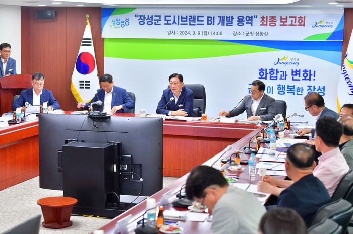 김한종 장성군수, 심민섭 장성군의회 의장, 지역 언론인, 공무원 등 30여 명이 참여한 가운데 열린 이날 보고회는 새롭게 확정된 도시 브랜드 최종안 및 응용안 발표와 개발 과정 소개, 질의 응답 순으로 이어졌다.