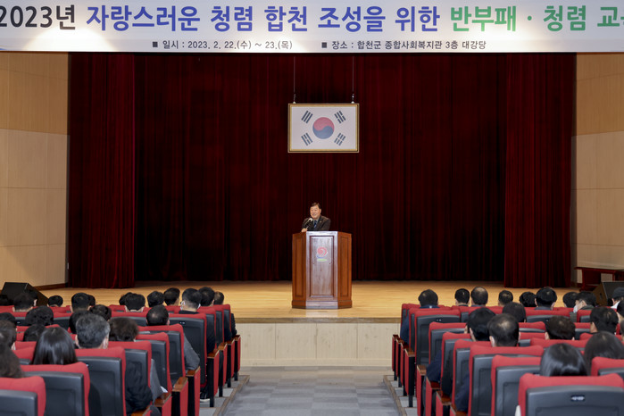 [프레스뉴스] 정재훈 기자= 합천군은 22일, 23일 이틀에 걸쳐 종합사회복지관 3층 대강당에서 합천군의회 조삼술 의장 외 10명 의원 및 합천군 공직자 1,000여 명을 대상으로 2023년 반부패·청렴교육을 실시했다.
