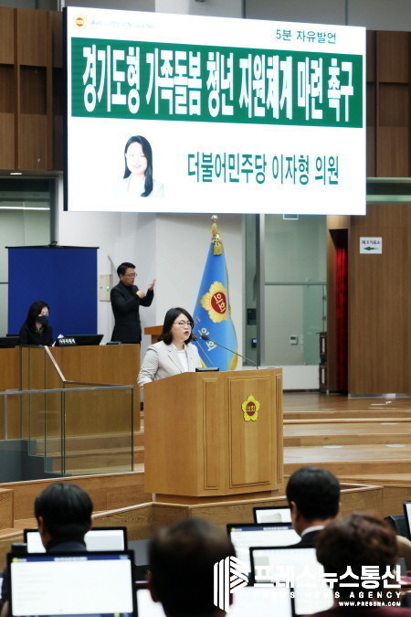 [프레스뉴스] 김대일 기자= 경기도의회 교육행정위원회 이자형 의원(더불어민주당, 비례)이 15일 제366회 임시회 5분자유발언을 통해 가족돌봄청년들이 처한 어려움을 알리고 경기도와 경기도교육청이 적극적으로 경기도형 지원체계 구축에 나서줄 것을 촉구했다.