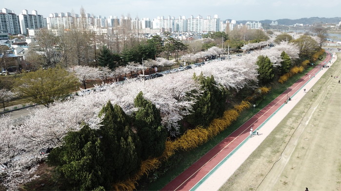 | ▲ 평거 들말 벚꽃 전경 사진(사진=진주시) |