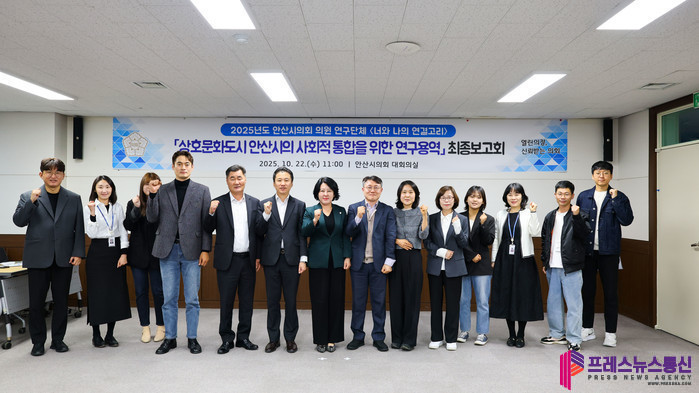 [프레스뉴스] 류현주 기자= 안산시의회 의원연구단체 ‘너와 나의 연결고리’(대표의원 황은화)가 22일 상호문화도시 안산시의 사회적 통합을 주제로 한 연구용역의 최종보고회를 개최했다.