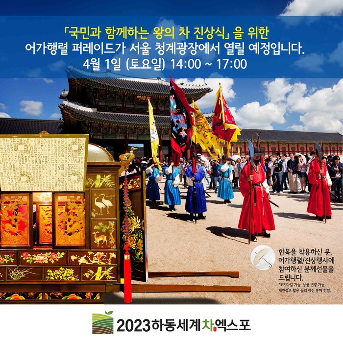 | ▲ 4월 1일 서울 청계광장에서 열리는 ‘왕의 차 진상식’ 홍보물(사진=하동군) |
