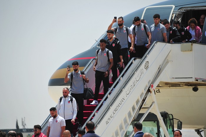 [프레스뉴스] 채정병 특파원=5일(현지시간) 오만의 무스카트 술탄 스포츠 스타디움에서 열린 국제축구연맹(FIFA) 2026 북중미 월드컵 아시아지역 3차 예선 9차전에서 오만을 3-0으로 제압하면서 요르단 역사상 최초로 월드컵 본선진출권을 획득한 요르단 축구대표팀이 요르단 퀸 알리아 국제공항에 도착하고 있다.