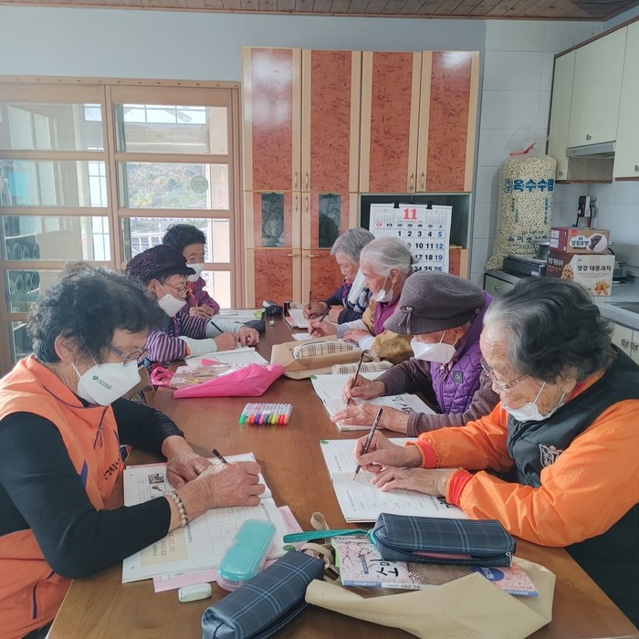 ▲ 산청군은 어르신들의 문해력 향상을 위한 2023성인문해교실 ‘청춘배움학교’를 운영한다. (사진=단성면 교동마을 교육 모습)사진=산청군 |