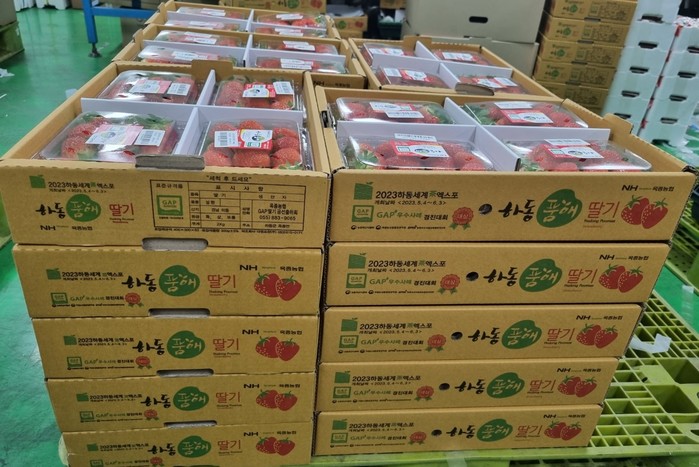 하동 딸기는 국내뿐만 아니라 미국, 캐나다, 필리핀 등에도 수출되고 있으며, 특히 군은 지난 11월 아랍에미레이트(UAE) 신선 농산물 수입 업체인 초이트람과 하동딸기 20만 달러(한화 약 2억 7000만 원) 어치의 수출협약을 체결하기도 했다.