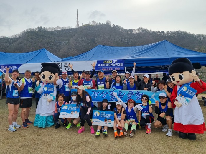 | ▲ 2023진주남강마라톤대회에서 엑스포 현장 홍보 활동중인 ‘준이·금이 홍보단’(사진=산청군) |