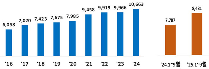 9월 기준 84억 8000만 달러…9년 연속 증가에 이어 올해 다시 최고치
