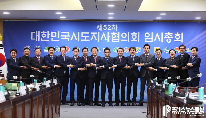| ▲ 10일 오전 전북도청 중회의실에서 김동연 경기도지사, 이철우 대한민국시도지사협의회 회장, 김관영 대한민국시도지사협의회 부회장, 유정복 대한민국시도지사협의회 부회장, 이장우 대한민국시도지사협의회 감사 등이 대한민국시도지사협의회 제 52차 임시총회에서 기념촬영을 하고 있다.(사진=경기도) |