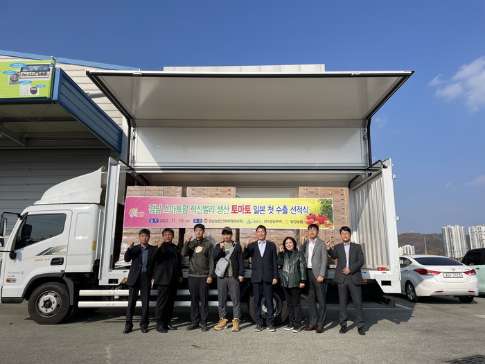 이날 수출 선적식에는 경남 스마트팜 혁신밸리 청년창업농을 비롯해 손재규 밀양시농업기술센터소장, 박형계 밀양농협 공판장지점장, 밀양시 직원 등이 참석해 스마트팜 혁신밸리에서 생산된 토마토의 일본 첫 수출을 기념했다.
