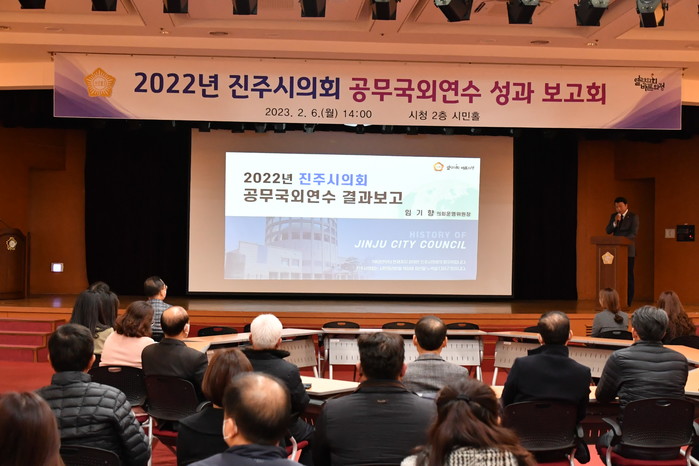 [프레스뉴스] 정재훈 기자= 진주시의회는 6일 시민, 진주시 출연·유관기관, 읍면동, 시청 공무원 등 100여 명이 참석한 가운데 시청 2층 시민홀에서 공무국외연수 성과보고회를 개최했다.