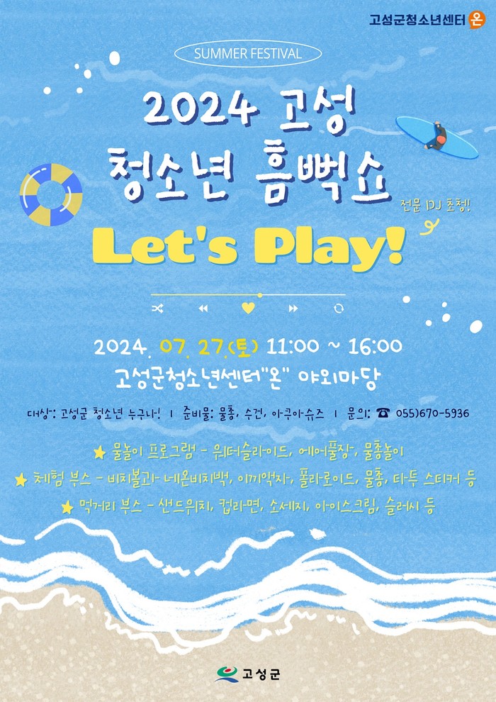 연 3회 중 2회차 진행 예정인 이번 청소년어울림마당은 무더운 여름 청소년들이 스트레스를 날리고 즐거운 추억을 만들 기회를 제공하기 위해 마련되었으며, 고성군 청소년 누구나 참여 능하다.